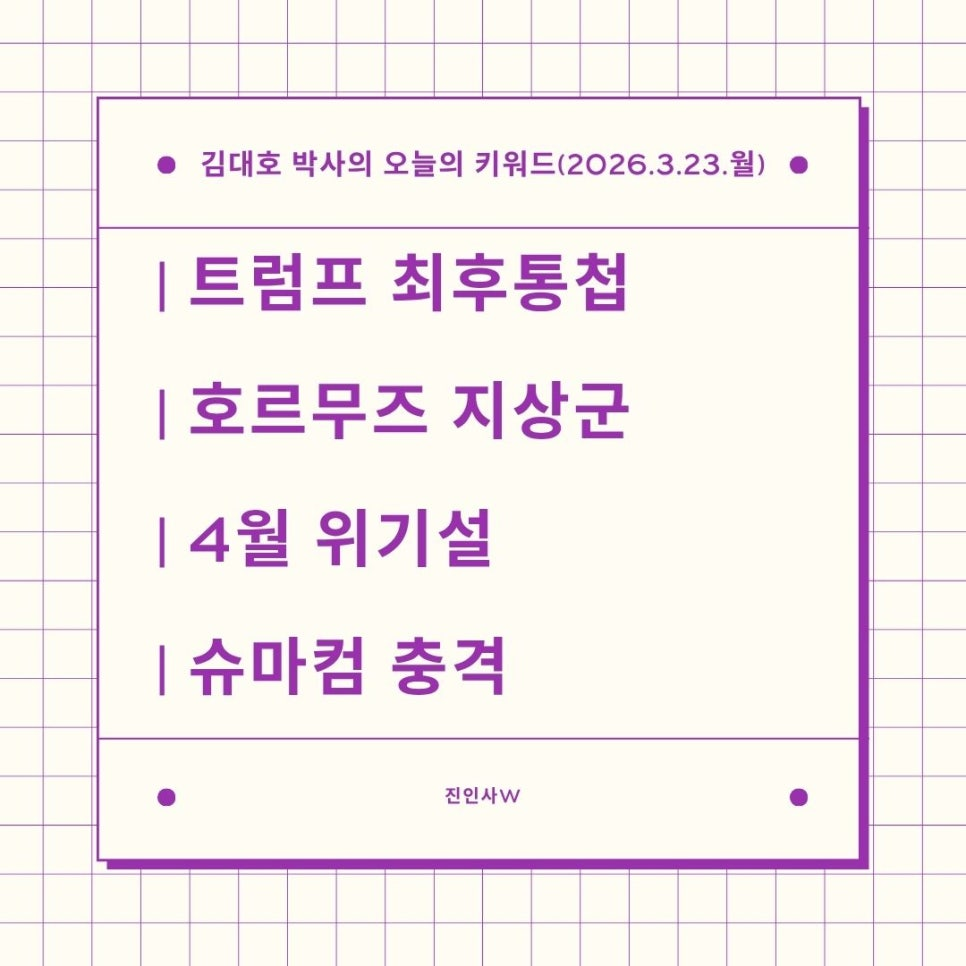 #김대호박사의오늘의키워드 #sbsbiz채널 #경제흐름읽기 #거시경제읽기 #세계주요이슈읽기 #한국경제주요이슈보기 #주식들여다보기 #부동산들여다보기 #시간은소중히쓰자 #트럼프최후통첩 #호르무즈지상군 #4월위기설 #슈마컴충격