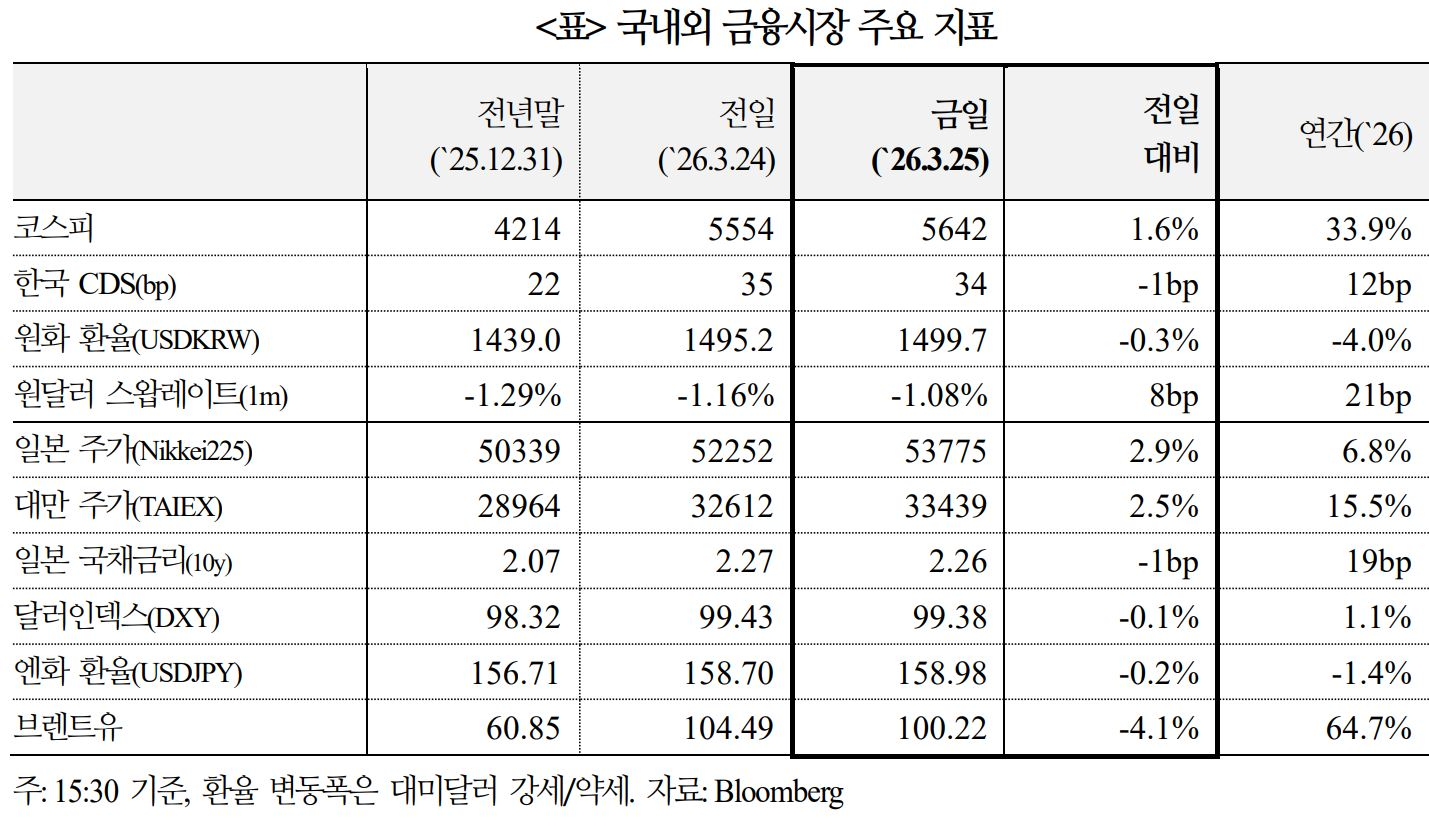 중동 사태에 대한 국내외 금융시장 반응(3.25)