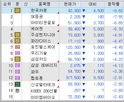 미국 반도체지수의 강세와 SK하이닉스의 ADR 상장 기대에 반도체주 상승(퀄리타스 반도체 +15.10%, 대덕전자 +14.18%, 한화비전 +12.65%, 심텍 +11.97%, 하나마이크론 +10.87%, 하나머티리얼즈 +10.45%)