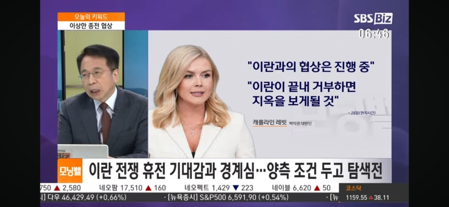 트럼프 휴전협상 스스로 셀프 종결 할 가능성이 높아지면서 뉴욕증시 오르고 유가 내리고 있습니다. 이란 정권 교체 및 선물을 받았다고 하는데 근거는 없고, 셀프 철수 4월 9일날에 조기 끝낼 수도 있다고 하죠. 지켜봐야 하겠습니다.