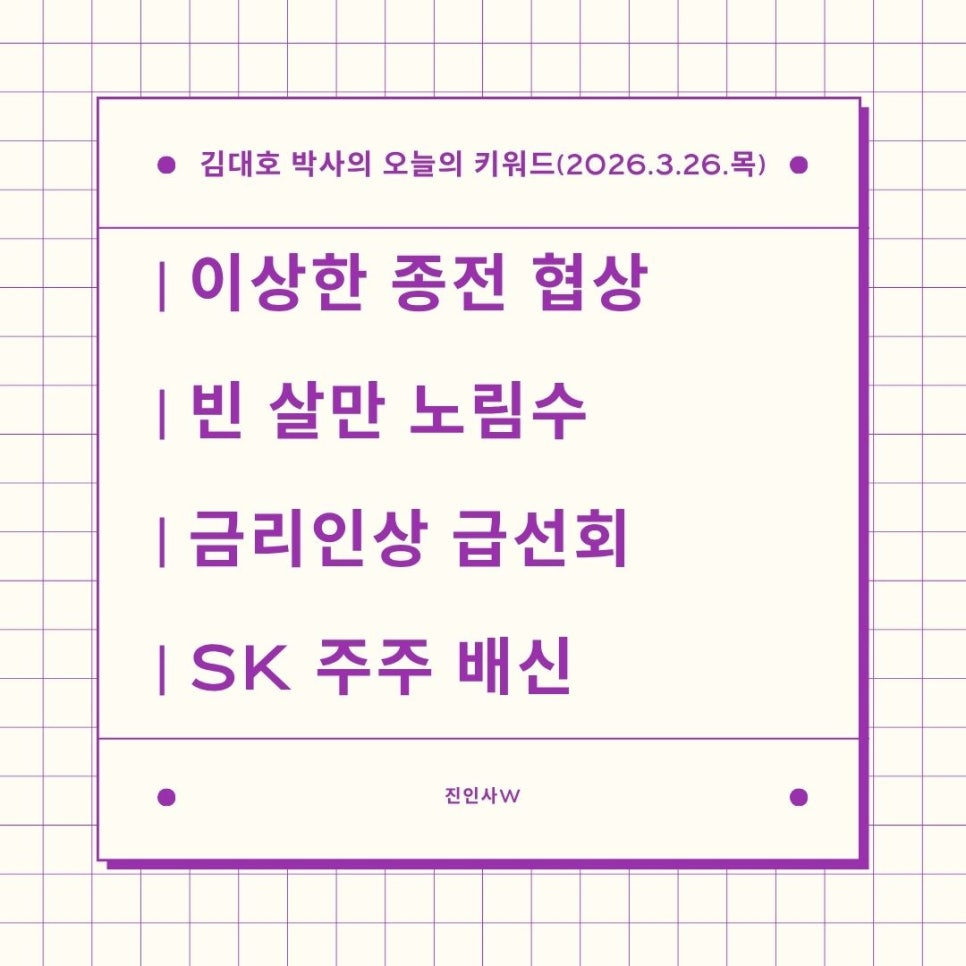 #김대호박사의오늘의키워드 #sbsbiz채널 #경제흐름읽기 #거시경제읽기 #세계주요이슈읽기 #한국경제주요이슈보기 #주식들여다보기 #부동산들여다보기 #시간은소중히쓰자 #이상한종전협상 #빈살만노림수 #금리인상급선회 #SK주주배신