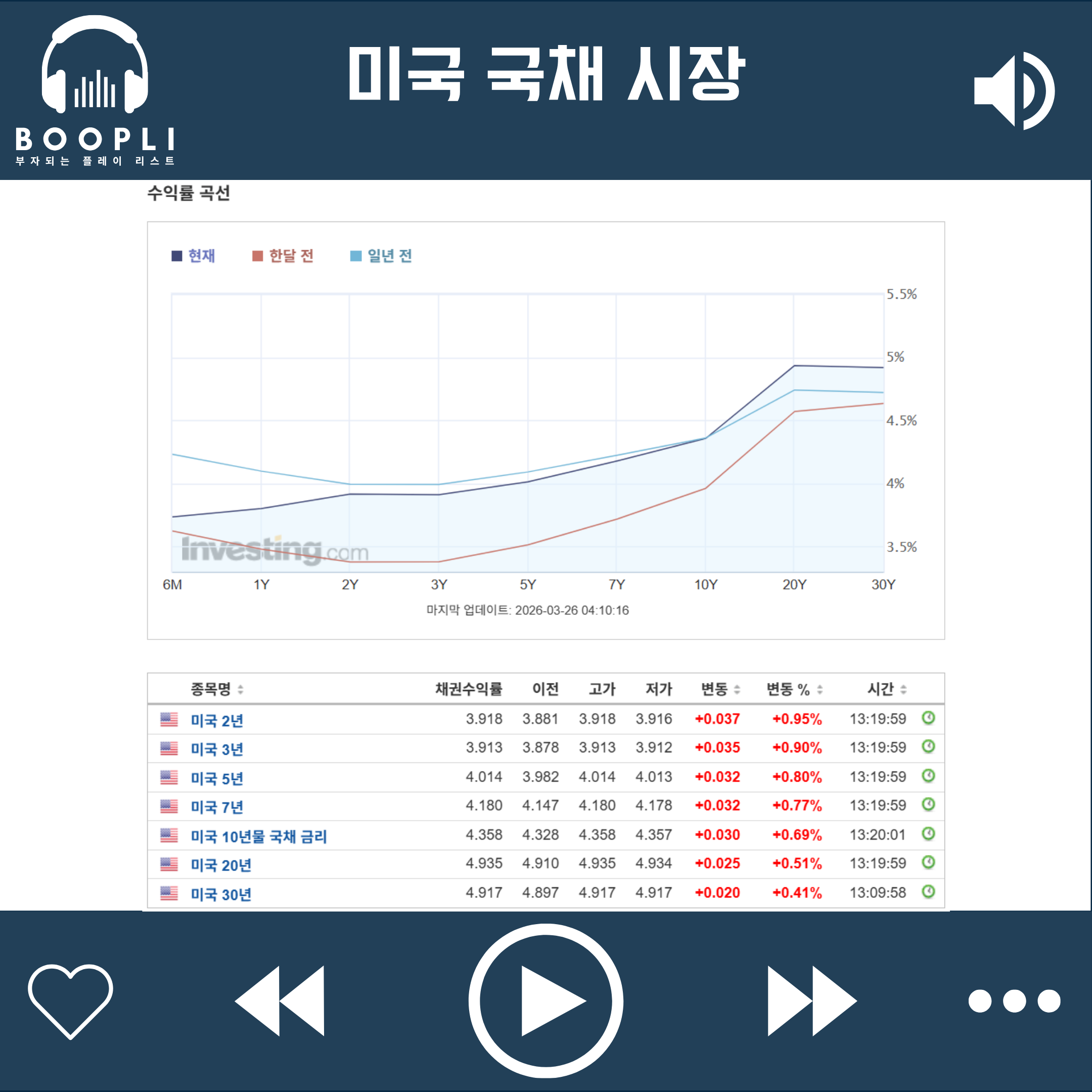 미국 국채는 미국과 이란 간 협상 기대감으로 국제 유가가 하락하자 장단기 금리 모두 하락했으나, 미국 5년물 국채 입찰 부진과 이란의 휴전 협상 거절 소식 등에 낙폭 축소