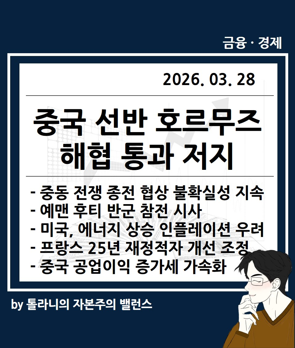 지금까지 '중국 선반 호르무즈 해협 통과 저지, 중동 전쟁 종전 협상 불확실성 지속 등 미국 증시 및 주요 국가 경제·금융 동향' 관련하여 알아보았는데요.