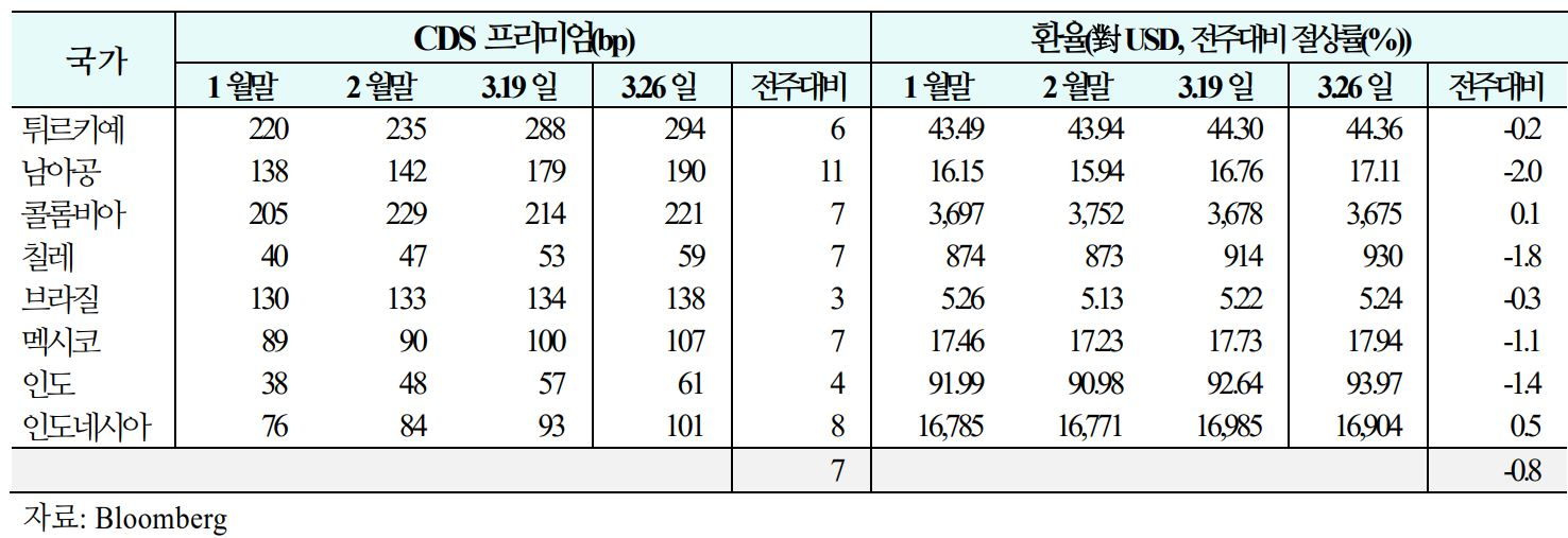 03. 주간 신흥국 CDS 및 환율 동향('26.3.20(금) ~ 3.26(목))