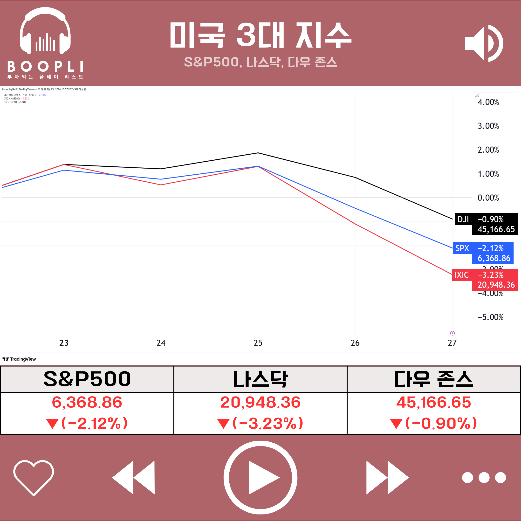 이번 주 미국 증시는 미·이란 전쟁을 둘러싼 지정학적 불확실성에 따른 국제유가 및 국채금리 변동, 사모대출 유동성 위기, AI 산업 재편 위협, 구글 '터보퀀트' 발표에 따른 메모리 수요 둔화 우려 등이 복합적으로 작용하며 전반적인 하락세를 나타냈다.