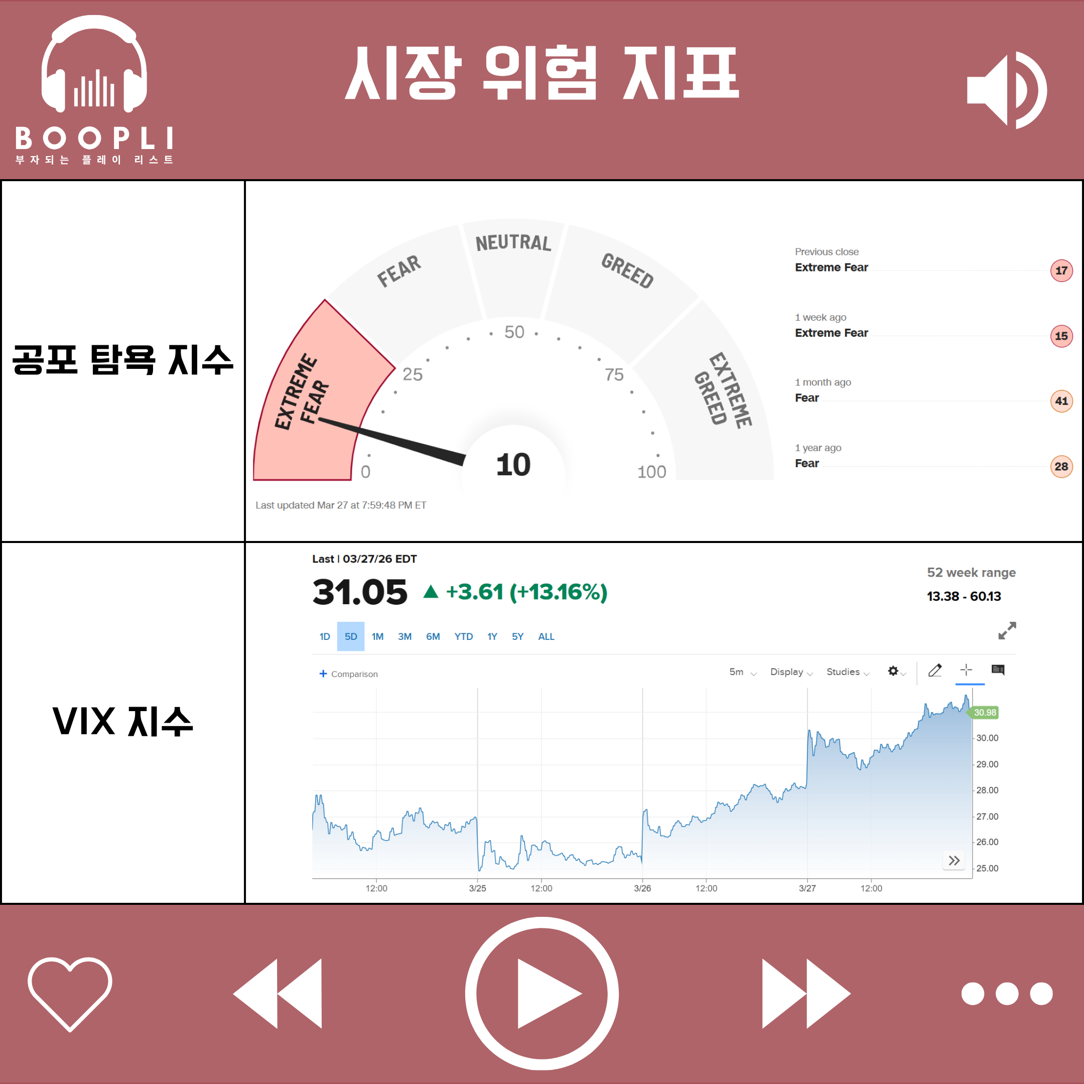 시장 변동성을 나타내는 VIX 지수는 1주일 전 대비 급등하면서 변동성이 확대되었다.