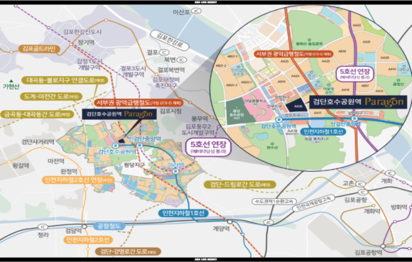 검단호수공원역 일대는 앞으로 더 발전할 곳인데, GTX-D의 호재도 있고 서울지하철 5호선 김포, 인천 검단신도시 연장사업에 예비타당성을 통과까지 했다. 예비타당성을 통과한 것 자체가 호재이지만 시간이 꽤나 오래 걸릴 수 있어 이 호재로 바로 진입하는 것은 금물이다. 그리고 경기도 서부권 광역급행철도도 예비타당성조사에 통과했다. 입지도 좋고 호재도 많지만 세대수가 많은 것이 옥에티로 대장 단지가 되기에는 좀 아쉽다.