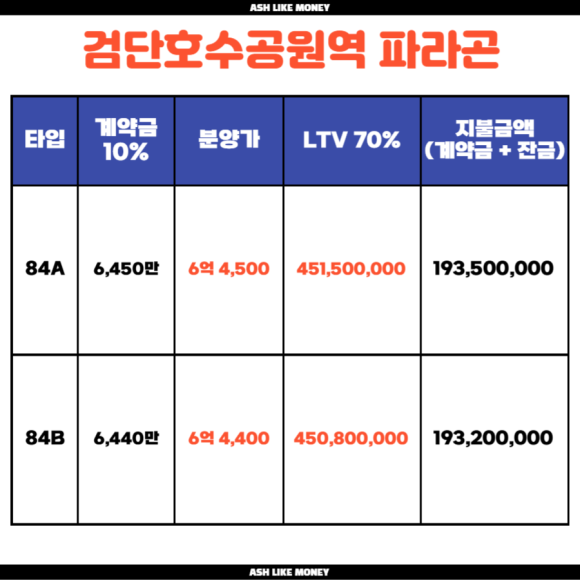 청약자격은 인천시에 거주하거나 수도권에 거주하는 만 19세 이상의 성인으로 우선공급은 인천시 거주자 50%, 기타 50%가 적용된다. 검단호수공원역 파라곤은 10.15대책에도 불구하고 대출규제를 받지 않는 곳이며 비규제지역이라 LTV 70%가 가능하다. 하지만 분양가상한제가 적용되어 전매제한 3년, 재당첨제한 10년이란 규제가 붙는다. 그래도 수도권이지만, 토허제가 적용되지 않았기에 거주의 의무가 없다. 대신, 잔금을 전세로 치르는 것은 불가능하므로 현금으로 등기를 친 다음 전세를 줄 수 있다.