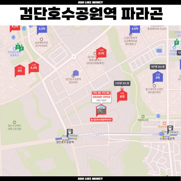 분양가가 6.45억 수준이라 근처 아파트가 8억 수준까지 올라왔기에 1억 5천만원이란 시세차익까지 기대할 수 있는 곳이다. 입지는 정말 좋은데 단지규모가 너무 작기에 대장이라 부르기는 어렵다. 향후 대장이 될 만한 단지는 AA17 구역으로 26년 7월 분양예정이다. 그래도 대출규제가 적용되어도 6억 이하의 단지이기에 6억 규제는 상관없고 5호선 예타통과 호재, GTX-D(미지수)란 호재도 있기에 미래가 기대되는 곳이다.