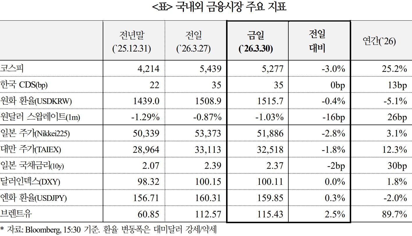 중동 전쟁에 대한 국내외 금융시장 반응(3.30)