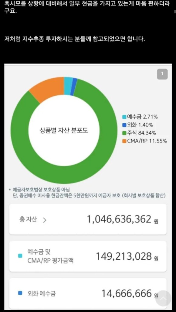현금도 일부 보유중이구요.