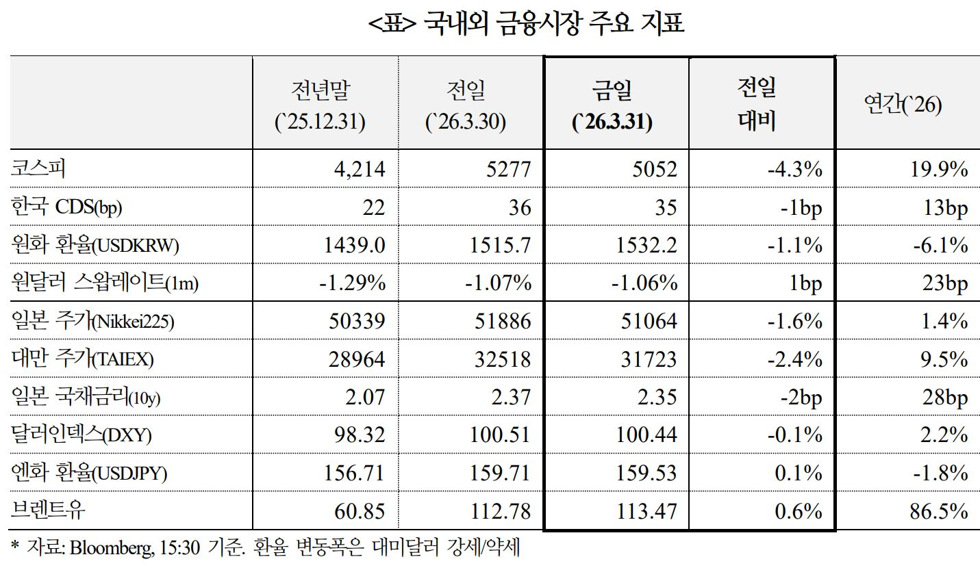 중동 전쟁에 대한 국내외 금융시장 반응(3.31)
