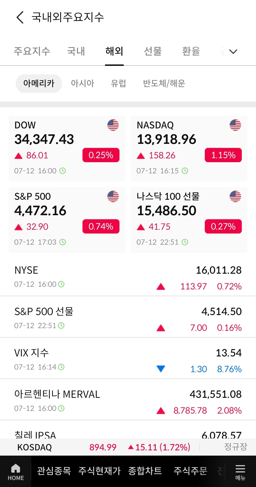 미국증시는 6월 CPI가 예상치를 밑돌면서 상승 마감했습니다. 전일 공개된 미국 6월 CPI는 전년대비 3.0%를 기록하며 예상치 3.1%를 하회했습니다. 근원 CPI도 4.8%를 기록해 예상치 5.0%를 밑돌았습니다. 물가가 잡혀가는 모습을 보이자 연내 금리 인상을 바라보는 관점도 연 2회에서 1회로 내려갔습니다. 금리선물시장은 7월 FOMC에서 기준금리가 인상될 확률을 높게 보고 있지만 연내 2회 인상 가능성은 40%에서 20%대로 낮춰졌습니다.