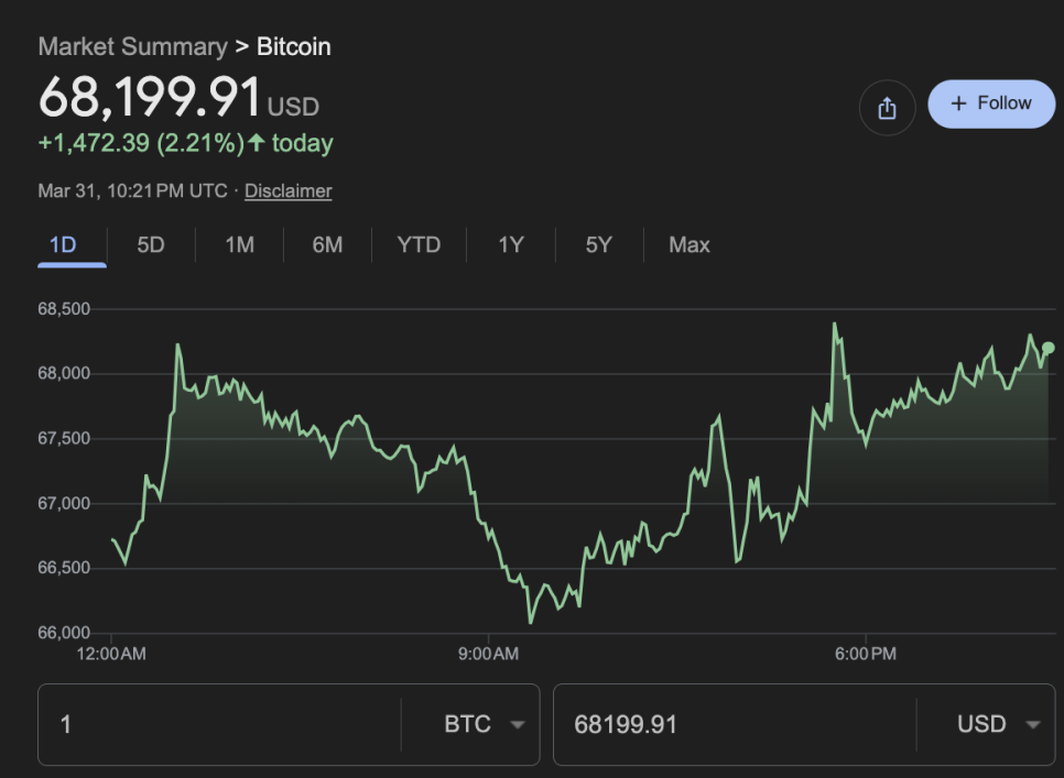 비트코인이 68,000달러를 돌파했습니다. 이란 전쟁 종전 협상 기대감 덕분인데요. 반면 구글의 양자컴퓨터 연구가 비트코인 보안에 대한 뜨거운 논쟁에 다시 불을 붙였고, 미국의 암호화폐 규제 법안은 갈수록 통과 가능성이 낮아지고 있다는 암울한 전망도 나왔습니다. 하나씩 짚어보겠습니다.