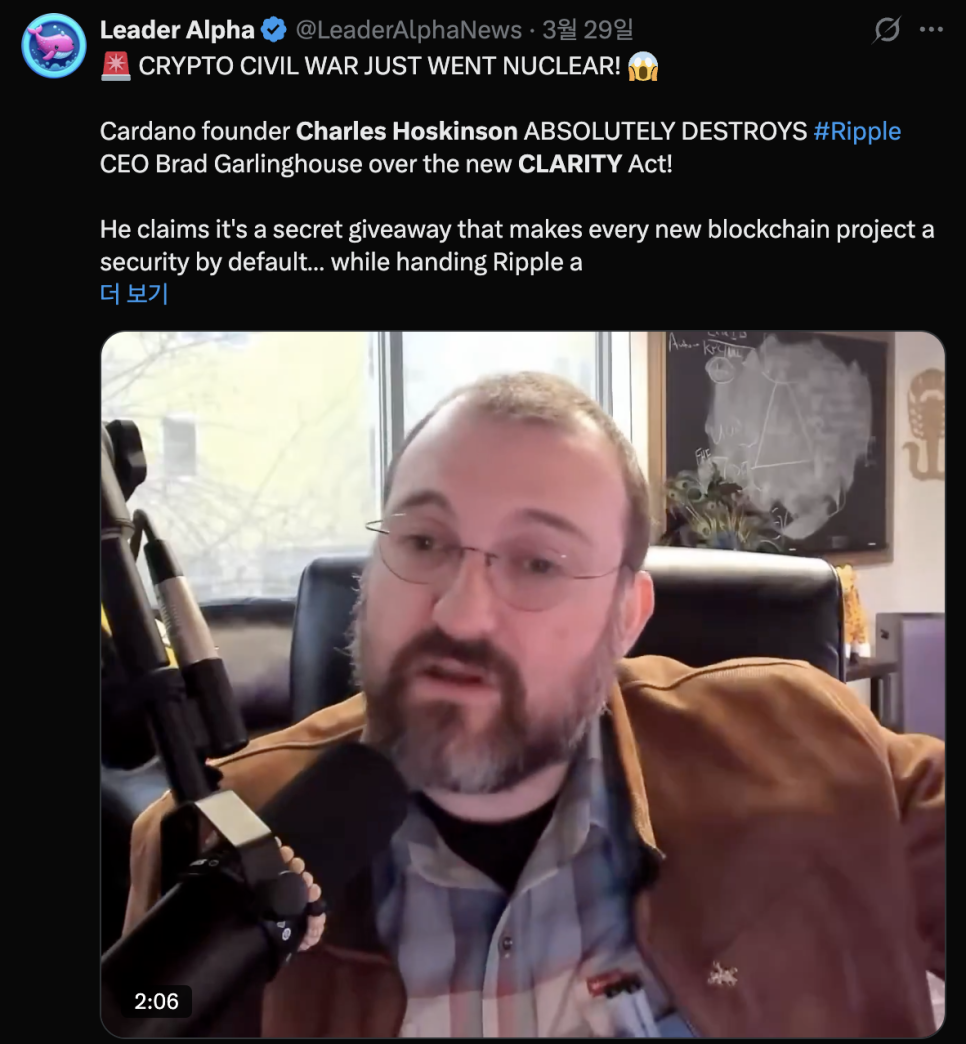 카디노(Cardano) 창시자 찰스 호스킨슨(Charles Hoskinson)은 한발 더 나아가 이 법안 자체에 근본적인 문제가 있다고 비판했습니다. 그는 "법안이 통과되더라도 실제 규칙을 다 만들어서 작동하려면 15년은 걸릴 것"이라고 했습니다. 특히 신생 프로젝트들은 기본적으로 증권으로 분류되는데, 미국 증권거래위원회(SEC)는 이 분류를 해제할 유인이 없다고도 지적했습니다. 결국 카디노, XRP, 이더리움처럼 이미 자리를 잡은 코인들은 혜택을 보겠지만, 새로운 프로젝트들은 진입장벽에 막히게 된다는 논리입니다.