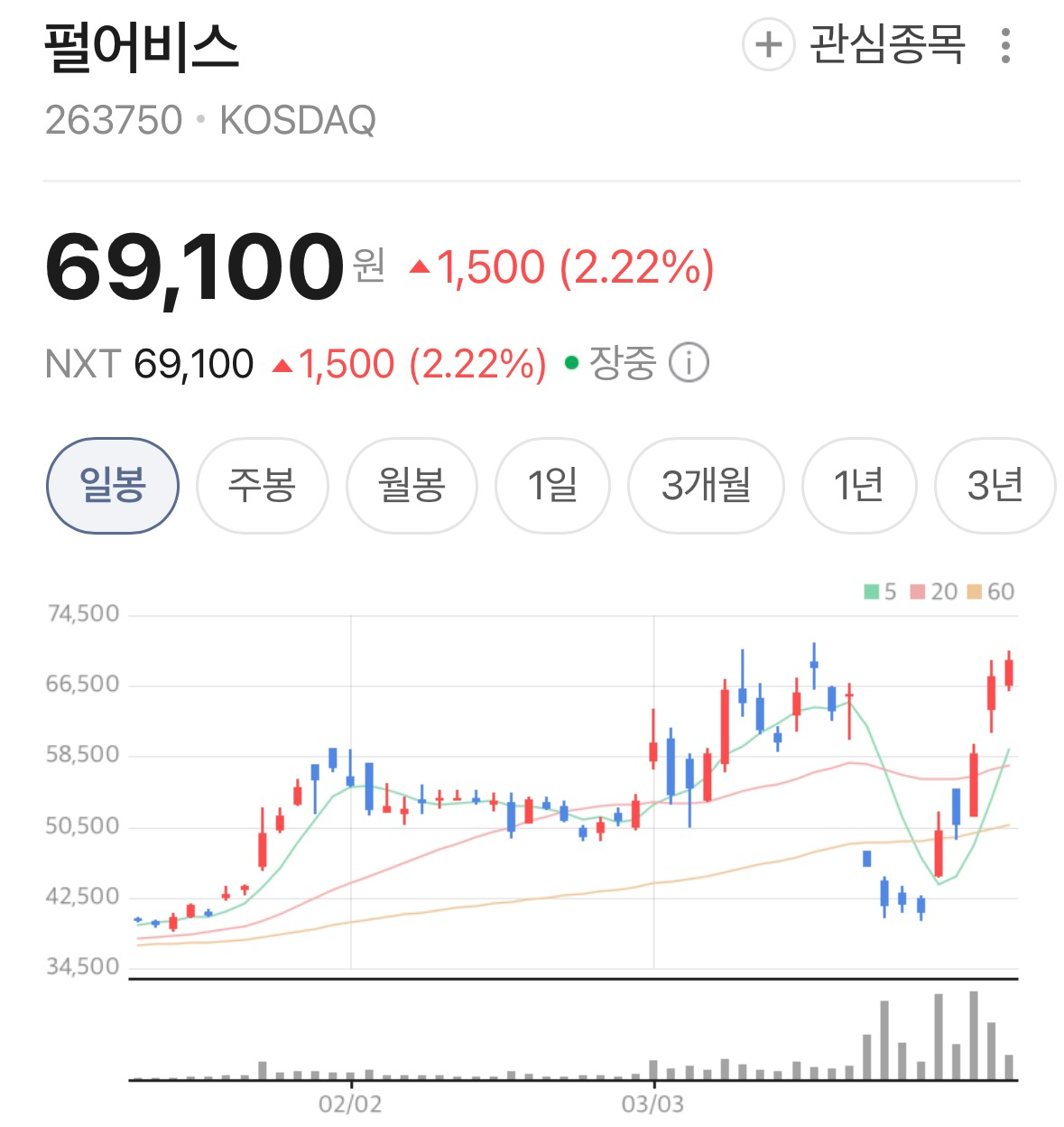 붉은사막 출시일(3월 20일) 펄어비스 주가는 4만1500원까지 하락했으나, 이후 상승세를 타며 3월 30일 기준 6만7600원까지 올라왔다. 증권사들은 목표주가를 기존 6만5000원에서 9만원으로 상향하며 매수 의견을 유지하고 있다.