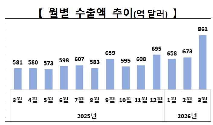 3월 수출은 중동 전쟁에도 불구하고 48.3% 증가한 861억 달러를