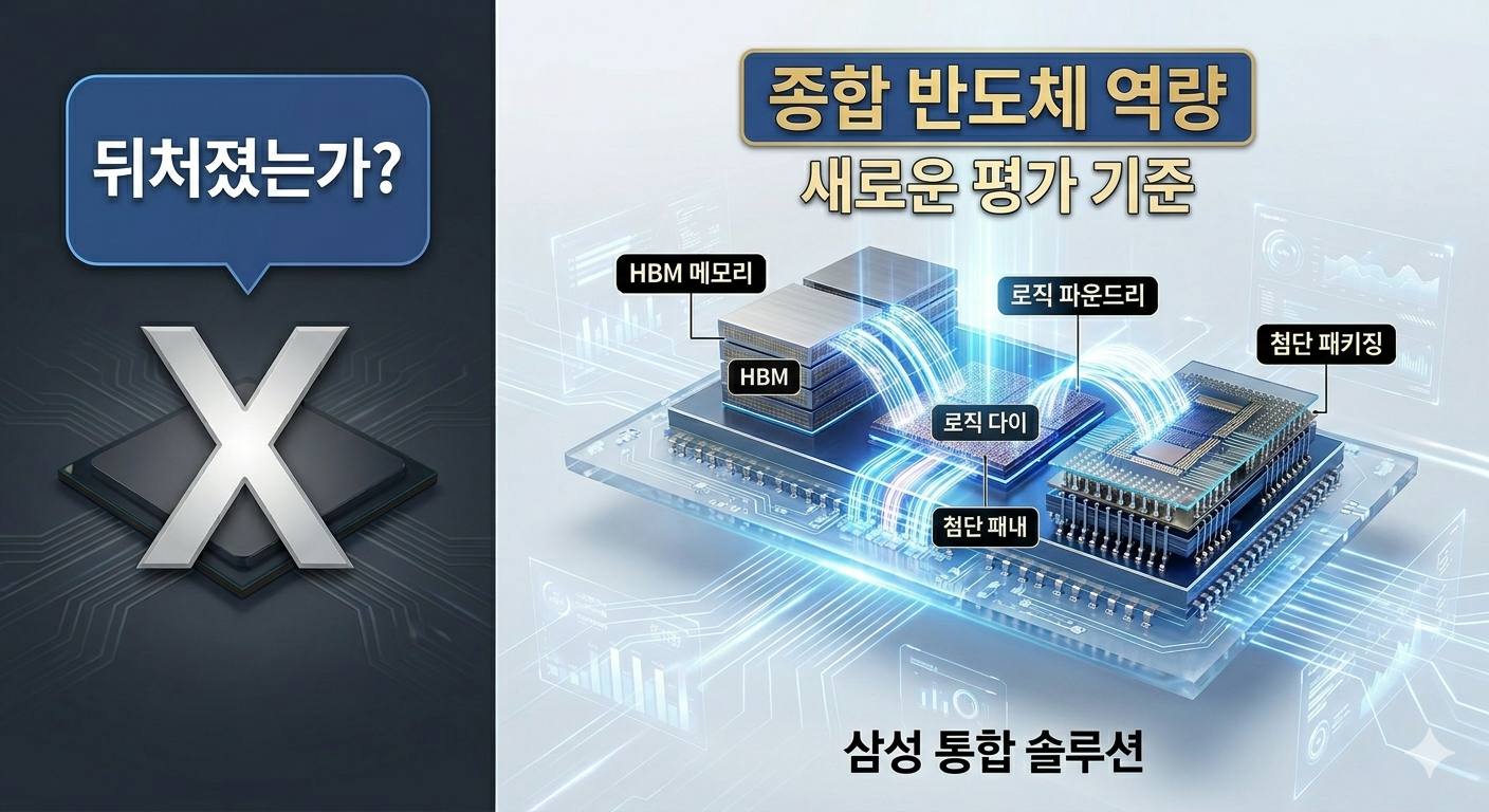 단일 칩 단위의 경쟁을 넘어섰습니다. 메모리와 파운드리, 최첨단 패키징을 아우르는 '종합 반도체 역량'이 완전히 새로운 평가 기준이 되고 있습니다.