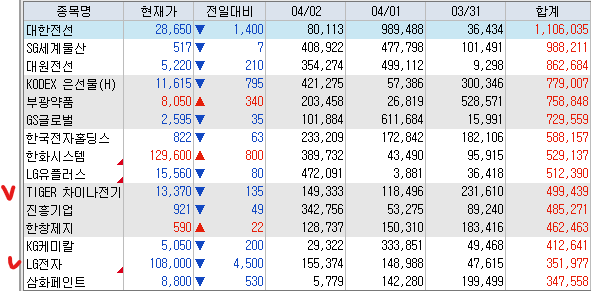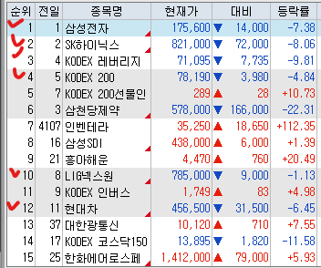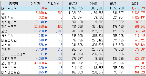 <거래대금 상위 종목>