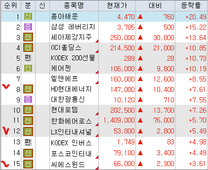 <시총 1조 원 이상 등락률 상위 종목>