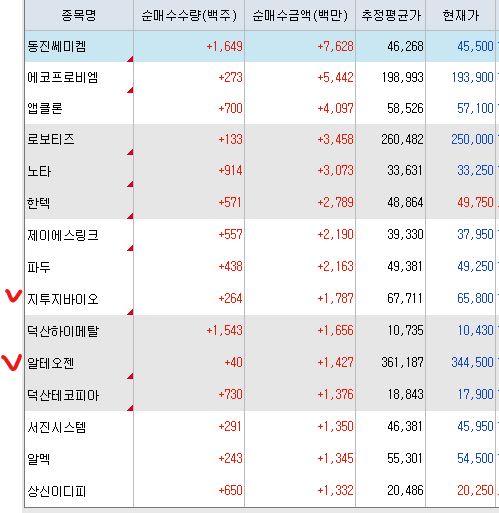 <외국인 매수 종목>