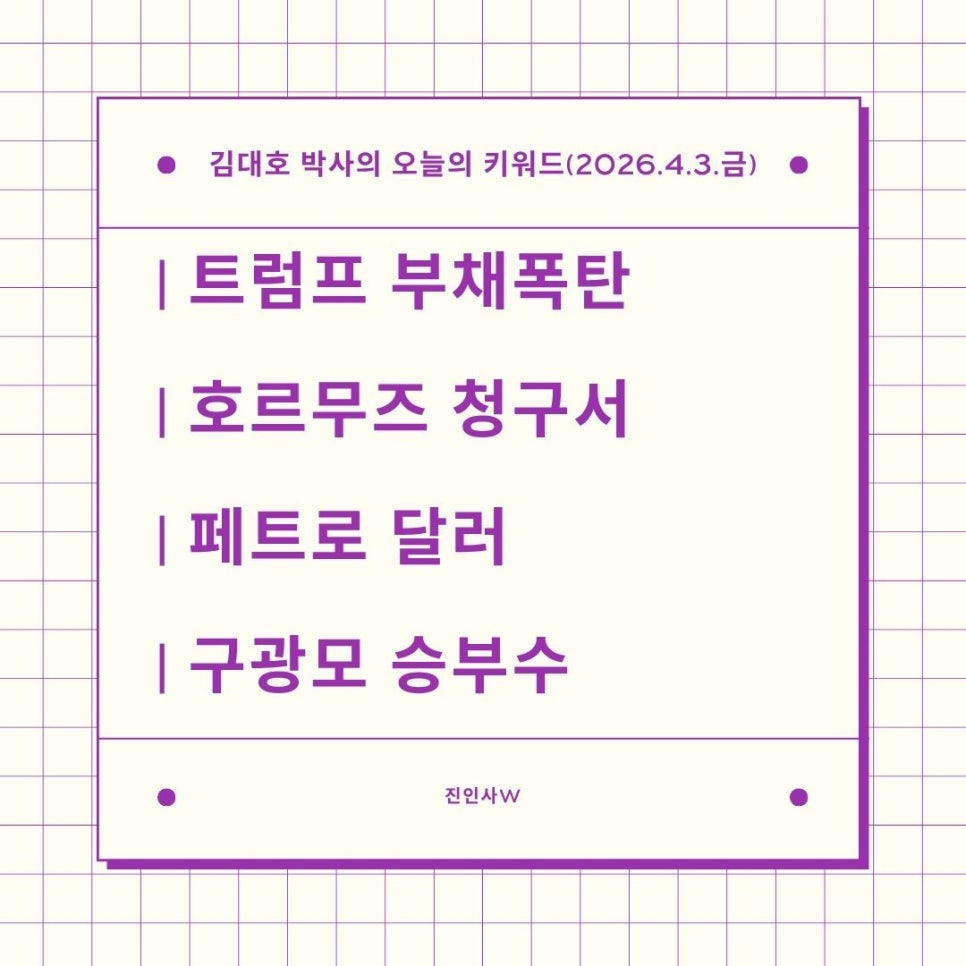 #김대호박사의오늘의키워드 #sbsbiz채널 #경제흐름읽기 #거시경제읽기 #세계주요이슈읽기 #한국경제주요이슈보기 #주식들여다보기 #부동산들여다보기 #시간은소중히쓰자 #트럼프부채폭탄 #호르무즈청구서 #페트로달러 #구광모승부수