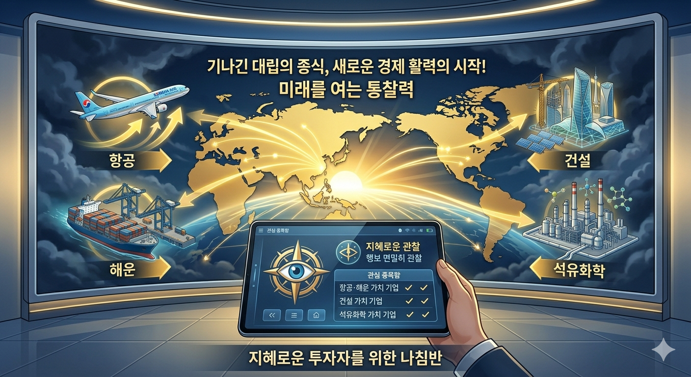 만약 이 두 국가 간의 기나긴 대립 국면이 평화적으로 마무리된다면, 과연 우리 시장에는 어떤 변화의 바람이 불어올까요? 위기가 해소되는 시점은 곧 새로운 기회가 태동하는 시기입니다. 이 갈등이 종료되었을 때, 선제적으로 주목해 보아야 할 핵심 산업군과 기업 동향에 대해 심도 있게 분석해 드리겠습니다.