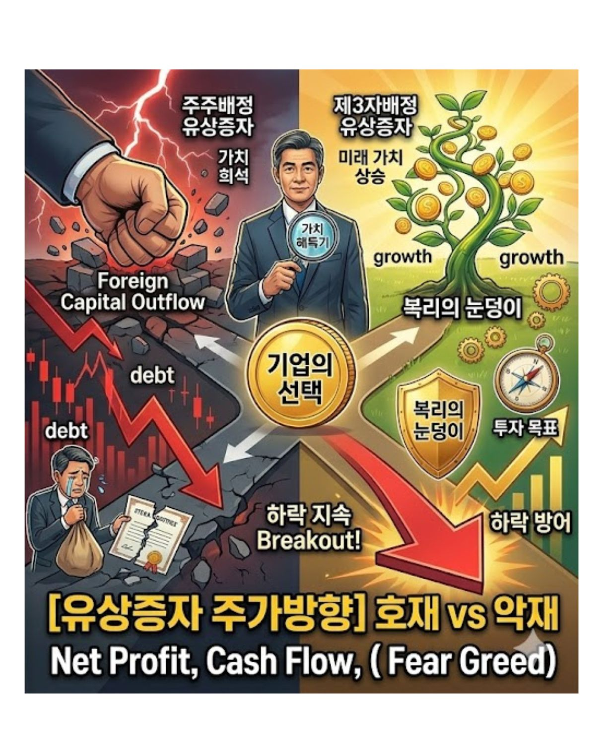 멀쩡히 들고 있던 내 주식의 가치가 갑자기 희석된다는 청천벽력 같은 공시, 유상증자는 무조건 피해야 하는 악재일까요? 자본을 조달하는 목적과 대상에 따라 주가방향이 완전히 뒤바뀌는 유상증자 판별법을 숙지해야 합니다.