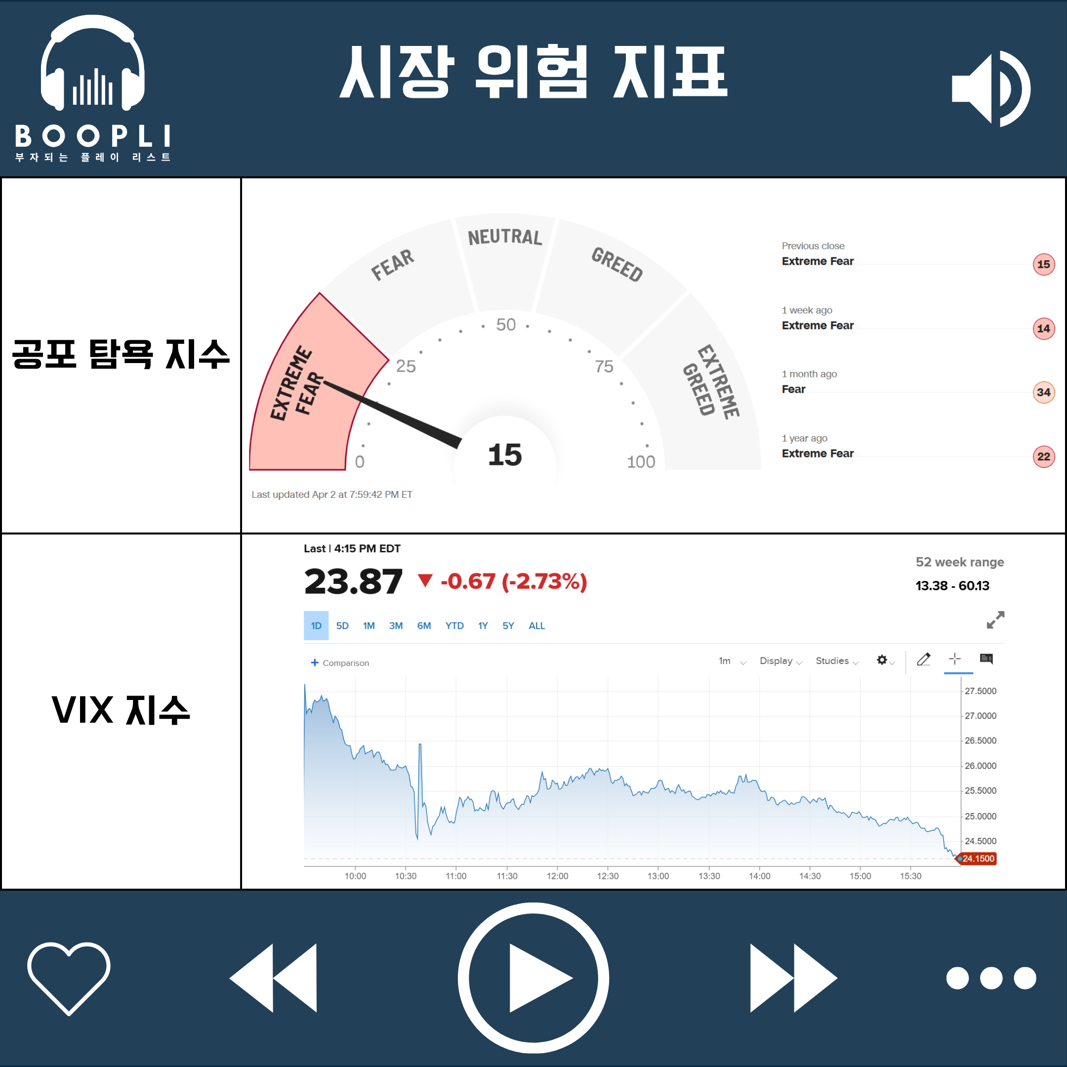 시장 변동성을 나타내는 VIX 지수는 하락하면서 변동성 완화