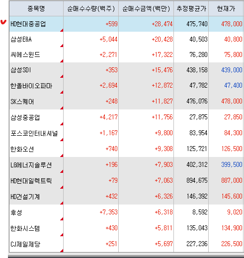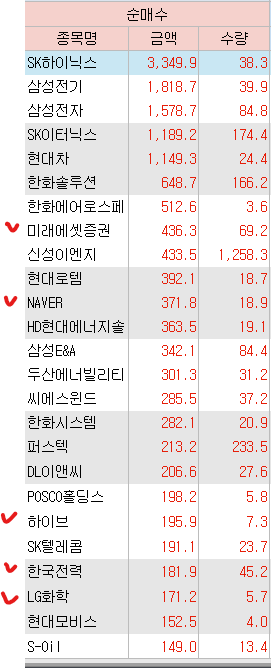 KOSPI에서는 외국인은 12거래일 만에 +9,336억 원 순매수, 기관도 +9,047억 원 순매수. 그러나 KOSDAQ은 외국인과 기관 모두 각각 -2,743억 원, -2,290억 원 순매도. 외국인은 KOSPI에서 전기/전자와 건설 업종을 매수했고, 금융과 제약 업종을 매도