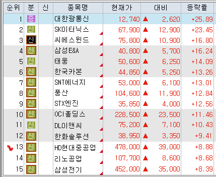 CS : 루멘텀 홀딩스(+8.14%) 등 美 광통신 관련주 강세 영향 등에 통신장비 테마 상승 속 상한가