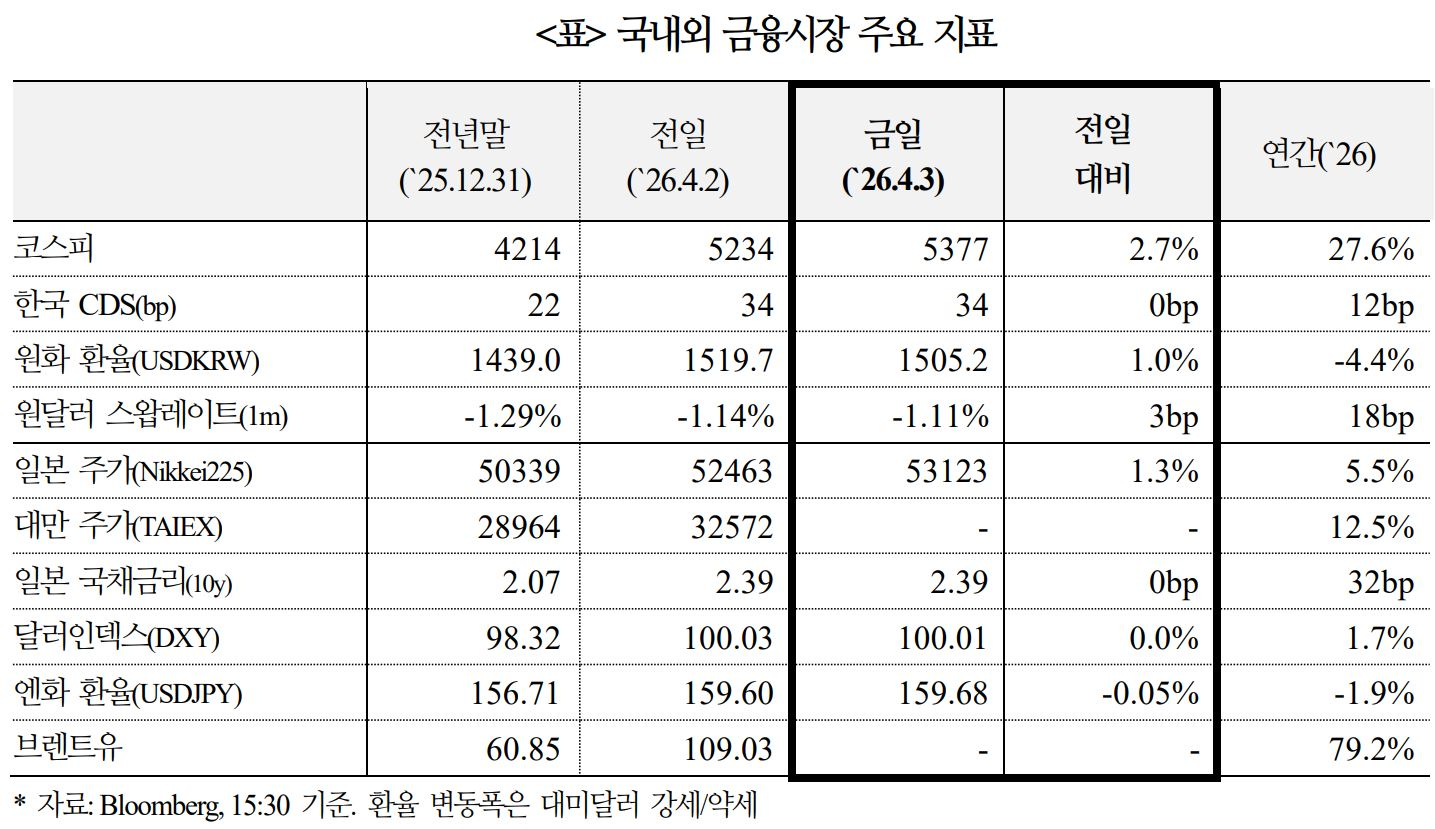 중동 전쟁에 대한 국내외 금융시장 반응(4.3)