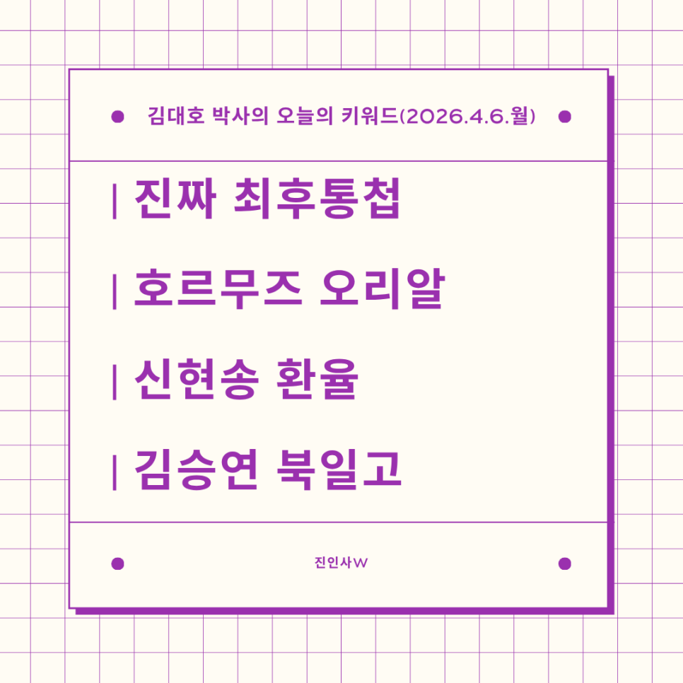 #김대호박사의오늘의키워드 #sbsbiz채널 #경제흐름읽기 #거시경제읽기 #세계주요이슈읽기 #한국경제주요이슈보기 #주식들여다보기 #부동산들여다보기 #시간은소중히쓰자 #진짜최후통첩 #호르무즈오리알 #신현송환율 #김승연북일고