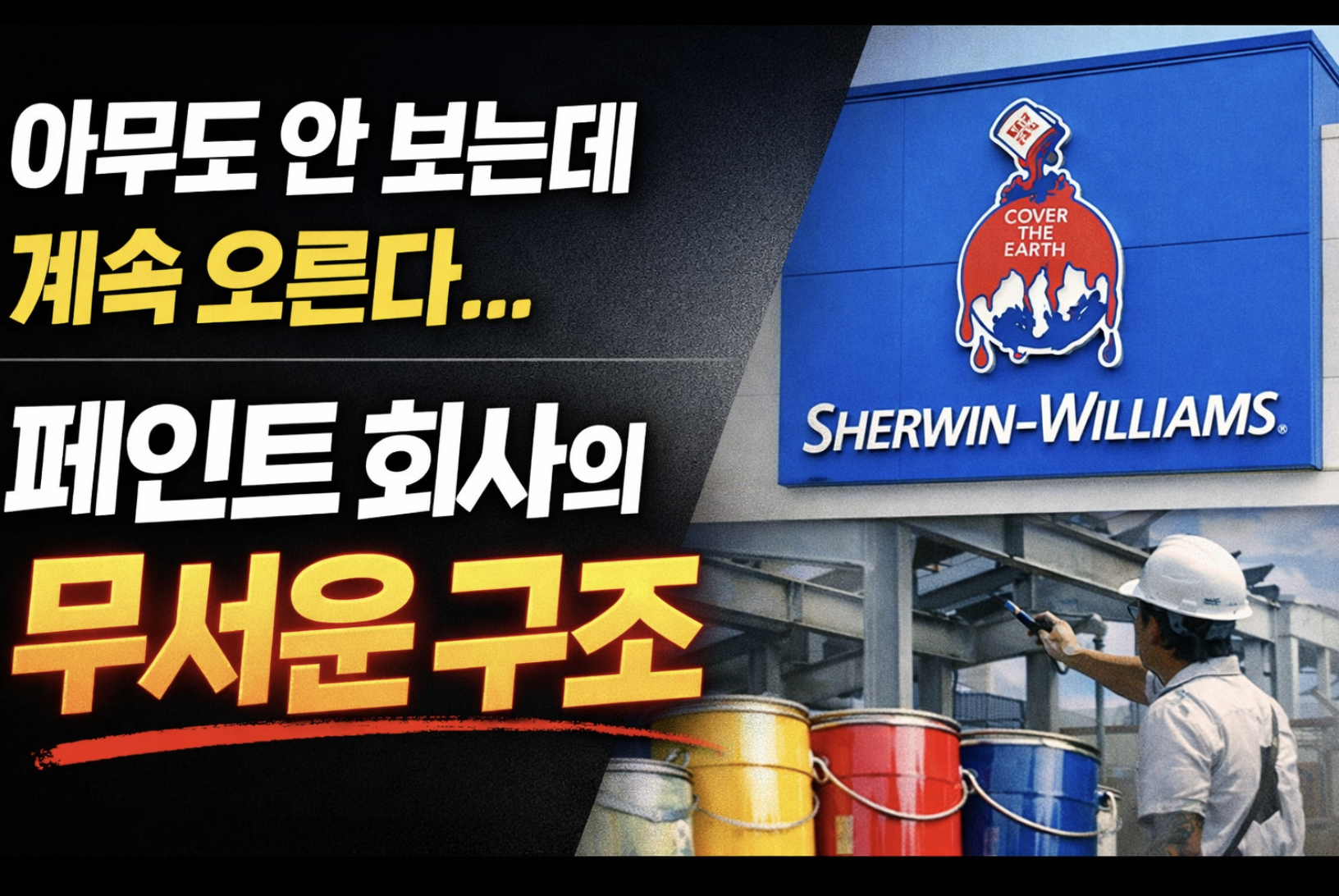 요즘 시장을 보면 누구나 비슷한 이야기를 합니다. AI, 반도체, 전기차. 다음에 올라갈 산업이 무엇인지, 어디에 돈이 몰릴지에 대한 이야기들이 넘쳐납니다. 그런데 이런 흐름을 한 발짝 떨어져서 보면 오히려 흥미로운 지점이 하나 보입니다. 정말 꾸준히 돈을 버는 기업들은 대부분 이런 화려한 키워드 중심에 있지 않다는 점입니다. 오히려 사람들의 관심에서 살짝 벗어나 있는, 너무 평범해서 아무도 깊게 보지 않는 산업에서 안정적인 현금흐름이 만들어지는 경우가 많습니다. 그 대표적인 사례가 바로 Sherwin-Williams입니다.