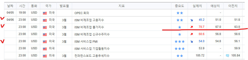 2. ISM 비제조업 고용지수 (45.2) : "고용 시장의 급랭"