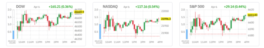 오늘도(4월 6일 현지시간) 미국 증시가 또 힘차게 올라갔어요!