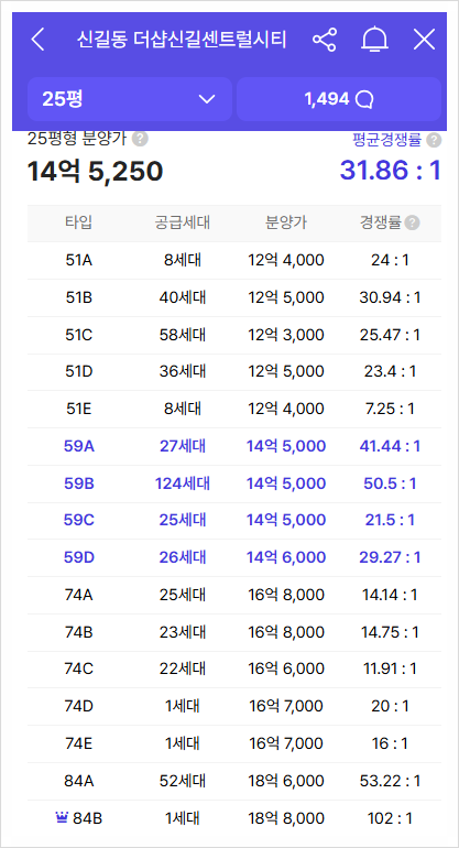 현재 거래된 매물들은 평당 2천~5천 사이이다. 가격은 좀 더 올라 8억 5천만원까지의 매물이 나왔다. 공시지가를 살펴보면 2,300만원~3,000만원 수준이다. 그래서 평균으로 2,700만원으로 가정하여 조합원 감정평가액을 계산했다. 감정평가액은 보정률 1.4배를 하여 평당 3,780만원으로 계산하면 조합원 총 종전자산평가액은 8,378억이다.