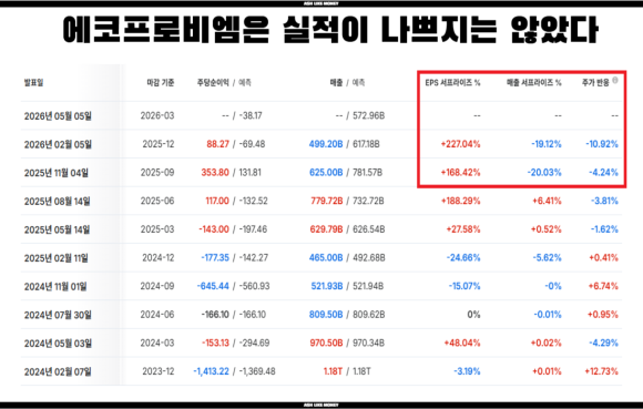 하지만 올라갈 때가 있으면 당연히 내려갈 때가 있다. 실적 대비 과도한 평가로 지적받고 금리 상승에 따른 경기둔화로 전기차 시장과 배터리 시장이 침체되었다. 보통 성장주는 금리 상승기에는 주가가 많이 떨어지는 법이고 에코프로비엠 역시 금리상승으로 인해 주가가 하락하여 25년에는 22년 수준으로 하락했다. 26년부터는 2차전지 분야가 바닥을 찍었다고 판단하고 기관 및 외국인들이 저가매입을 시작했다. 실제로 에코프로 그룹도 최근 흑자로 돌아서며 다시 주가반등을 시작하고 있다.