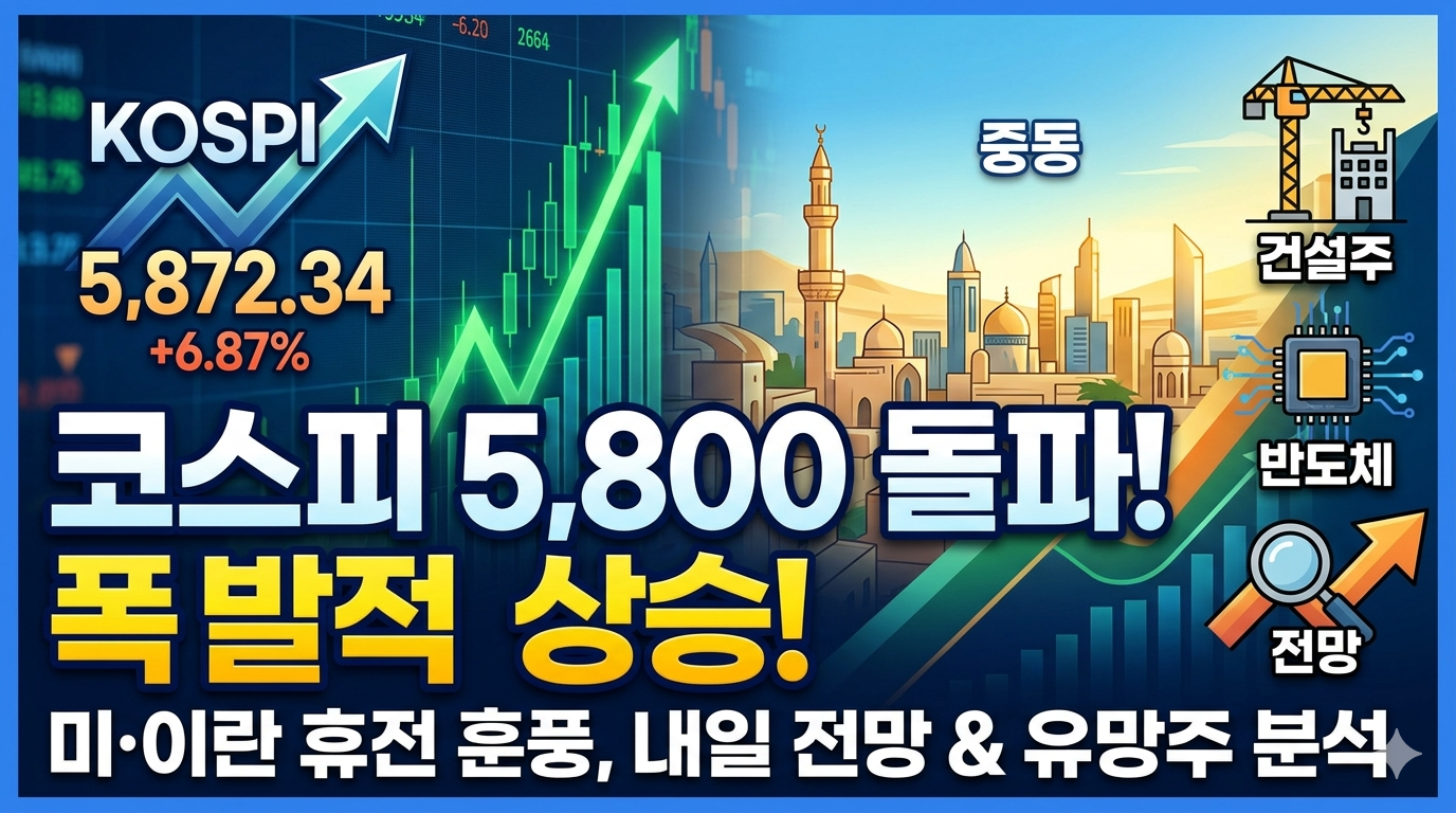 내일 시장은 오늘의 급등에 따른 단기적인 숨 고르기 장세가 나타날 수 있습니다. 따라서 무리하게 포지션을 늘리기보다는, 2주간 이어질 양국의 협상 진행 상황과 글로벌 유가 흐름을 면밀히 체크하는 것이 좋습니다. 앞서 말씀드린 재건 관련 건설주와 실적이 뒷받침되는 반도체 대형주를 중심으로, 차분하게 시장 흐름을 관망하며 앞으로의 방향을 설정하시길 바랍니다.
