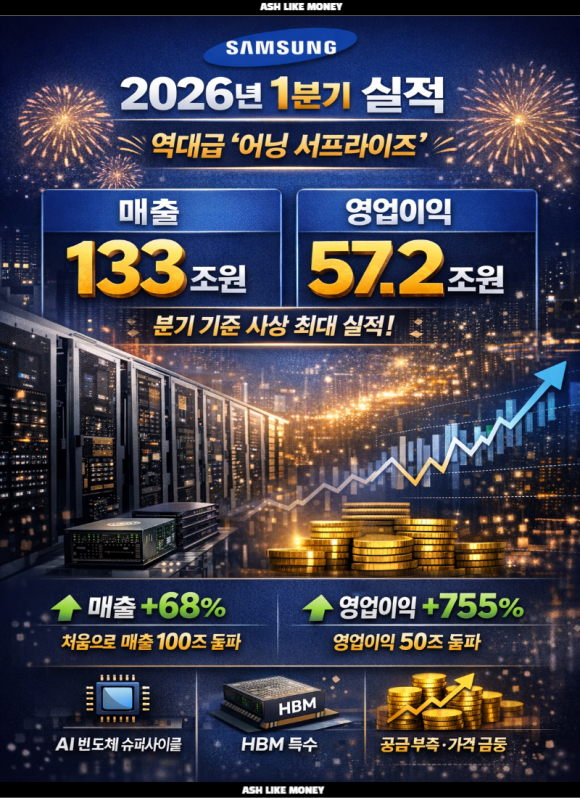 한국 기업에서 새로운 역사를 썼다! 그 자랑스러운 회사는 바로 대한민국 1등 회사인 삼성이다. 매출액이 133조원이고 영업이익이 무려 57조원이다! 작년 4분기 실적 신기록을 스스로 갈아치운 정말 대단한 회사이다. 올 영업이익이 37조라고 예상했던 증권사조차 맞추지 못한 엄청난 어닝서프라이즈이다. 삼성전자의 1분기 실적은 한국 기업의 역사를 최초로 다시 쓴 수준이다. 분기 영업이익이 무려 50조원 이상인 회사는 한국 역사상 최초이고 대기업 중 1분기 영업이익이 전년 영업이익을 넘어선 것은 SK하이닉스 이후 처음이다. 그런데 삼성전자 주가는 지지부진하다.