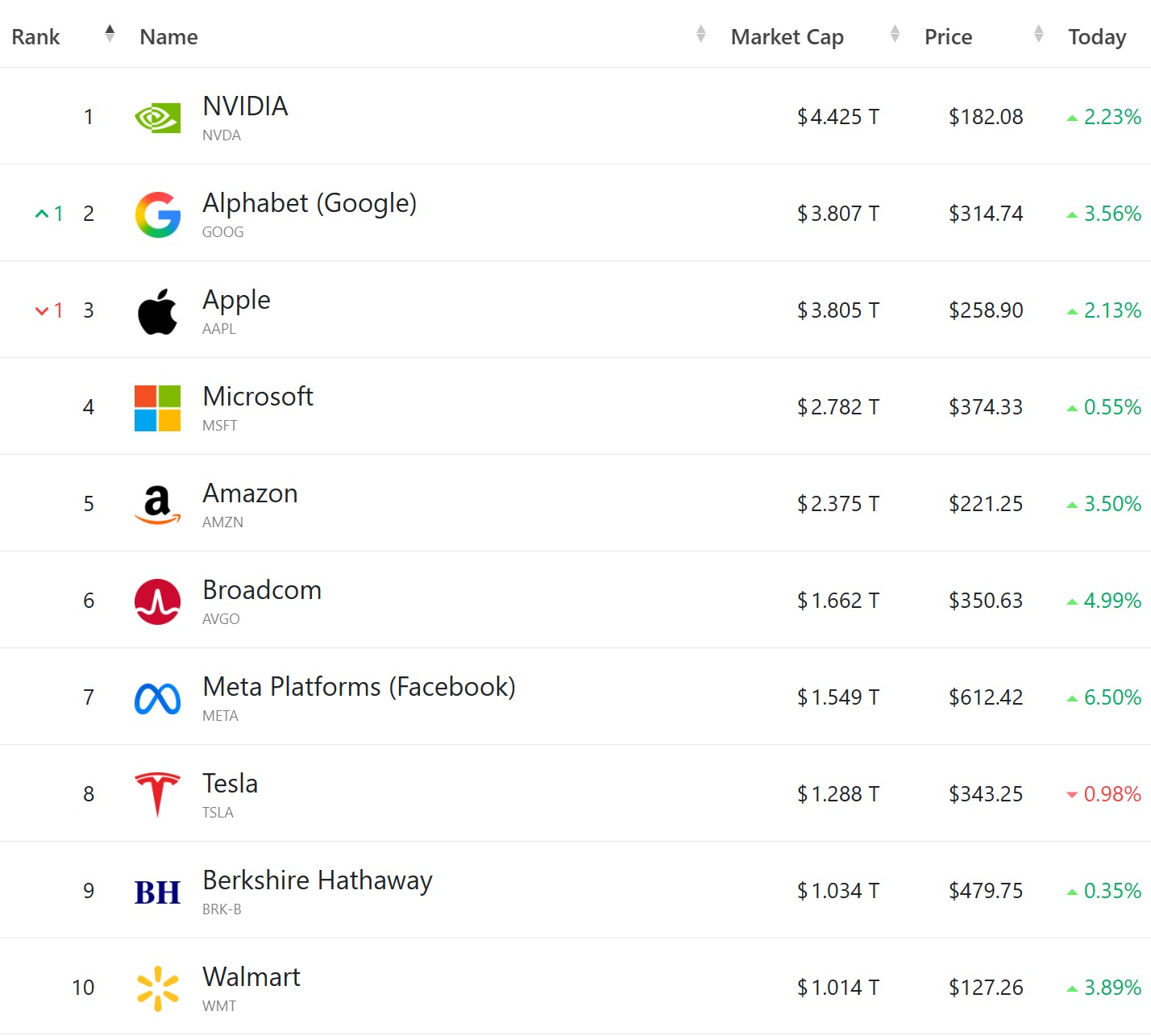 엔비디아는 전일 대비 +2.23%, 애플 +2.13%, 알파벳 +3.56%, 마이크로소프트 +0.55%, 메타 +6.50%, 아마존 +3.50% 상승하였습니다. 반면 테슬라는 전장 대비 -0.98% 하락하면서 거래를 마쳤습니다.