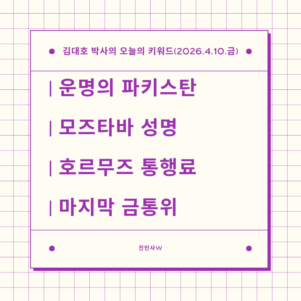 #김대호박사의오늘의키워드 #sbsbiz채널 #경제흐름읽기 #거시경제읽기 #세계주요이슈읽기 #한국경제주요이슈보기 #주식들여다보기 #부동산들여다보기 #시간은소중히쓰자 #운명의파키스탄 #모즈타바성명 #호르무즈통행료 #마지막금통위