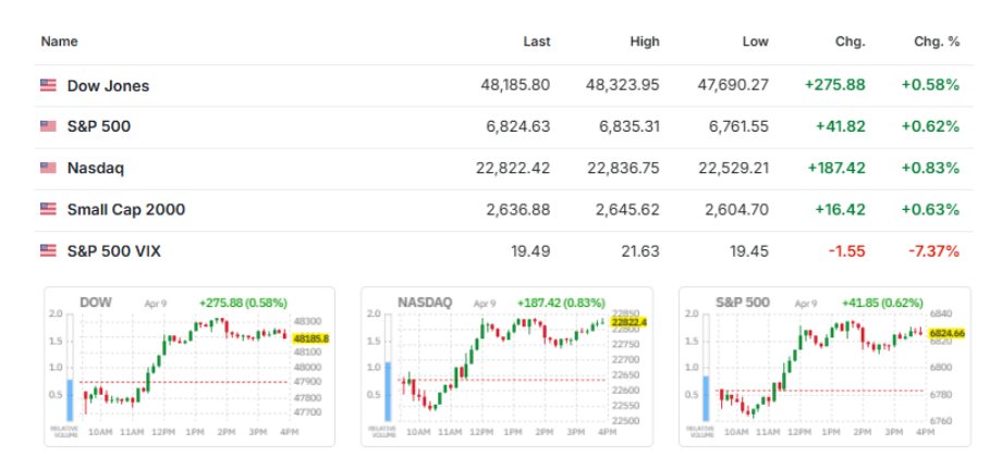 다우존스 지수는 275.88포인트(0.58%) 상승한 48,185.80으로 마감했고, S&P 500은 0.62% 오른 6,824.66, 나스닥은 0.83% 급등한 22,822.42를 기록했습니다.