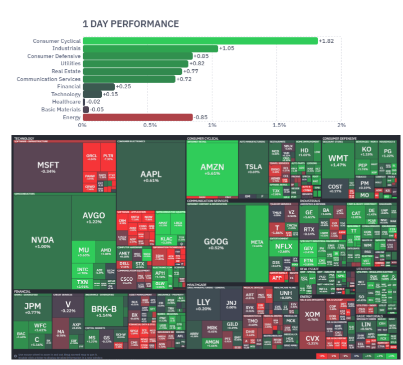 특히 아마존이 5.6% 폭등했는데요, 자체 AI 반도체를 제3자에게 판매하는 방안을 검토한다는 소식 때문이에요. 메타도 자체 AI 모델 공개 기대감으로 2.6% 올랐습니다.