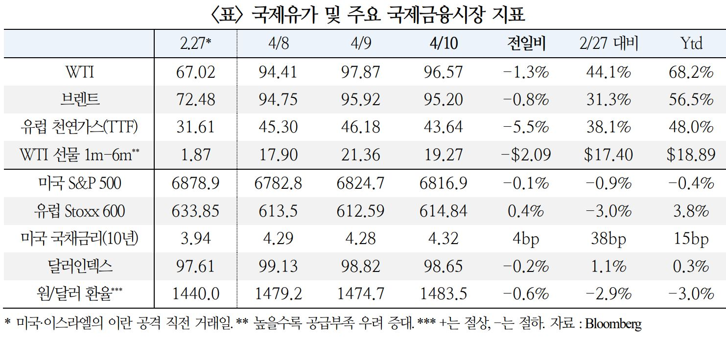 중동 전쟁 및 국제유가 동향 (4.11)