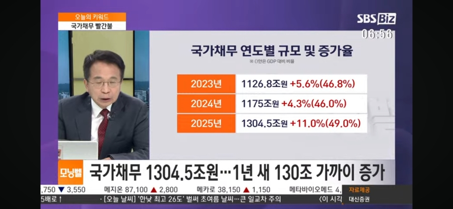 우리나라 국가채무 빨간불 1,300조를 넘어서 GDP 50%가 되는 작년부터 환율이 좋지 않았고, 이란 전쟁이 더욱 심화시켰습니다.