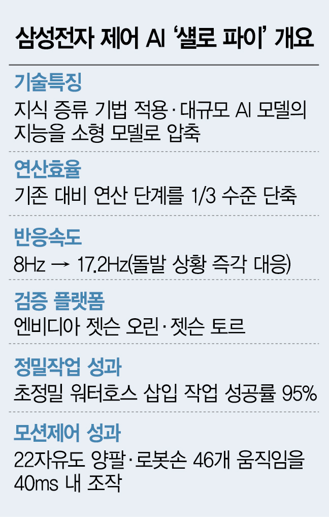 이를 통해 삼성전자는 기존 로봇 제어 모델의 연산 단계를 약 3분의 1 수준으로 감축하는 데 성공
