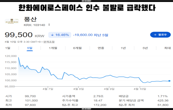 한화는 최근 한화에어로에서 K-록히드마틴을 꿈꾸며 모든 방산 업체들을 품에 안으려 했다. 그래서 풍산의 안강과 부산의 방산사업장을 인수하려했다. 하지만 풍산에서 기습 철회를 통해 방산을 인수하려는 시도는 무산되었다. 오늘은 한화에어로스페이스 풍산 방산산업부 합병 실패 주가전망에 대한 포스팅입니다.