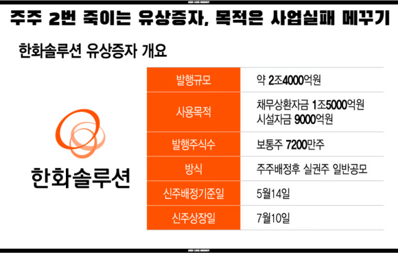 한화는 한국의 록히드마틴이 되기 위하여 방산 부문에 대해 매우 적극적으로 투자하고 있다. 반면, 한화솔루션의 유상증자 이슈가 있어 여론은 매우 안 좋다. 경영실패는 주주들에게 돌리고 수익은 오너가에게만 돌아간다는 비판 여론이 거세며 코리아 디스카운트의 원인이란 분석이 많다.