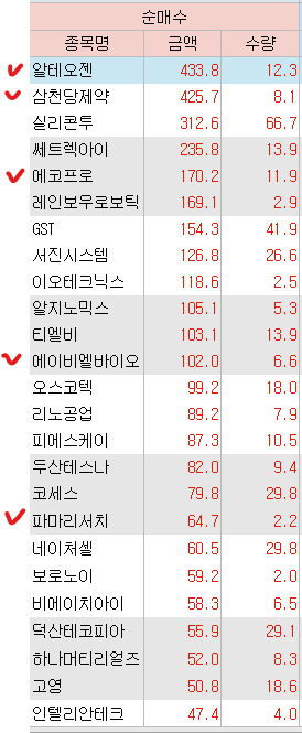 매수 : Tiger미국30년국채커버드콜액티브 Kodex200타겟위클리커버드콜 Tiger배당커버드콜액티브 kodex코스닥150 알테오젠 삼천당제약 에코프로 에이비엘바이오 Tiger차이나전기차 미래에셋벤처